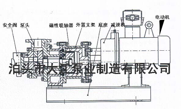 磁力泵可以分磁力齒輪泵、離心式磁力泵、螺桿式磁力泵等等,很多客戶不明白到底什么叫整機(jī),下面我們?cè)敿?xì)講解整機(jī)的構(gòu)造,整機(jī)是客戶購(gòu)買后,直接裝上管道,不用添加任何的零部件了,磁力齒輪泵整機(jī)大體包括:泵頭、閥(根據(jù)工況而定)、磁力聯(lián)軸器、支架、減速機(jī)、電動(dòng)機(jī)、底座等大部件構(gòu)成,下圖展示: